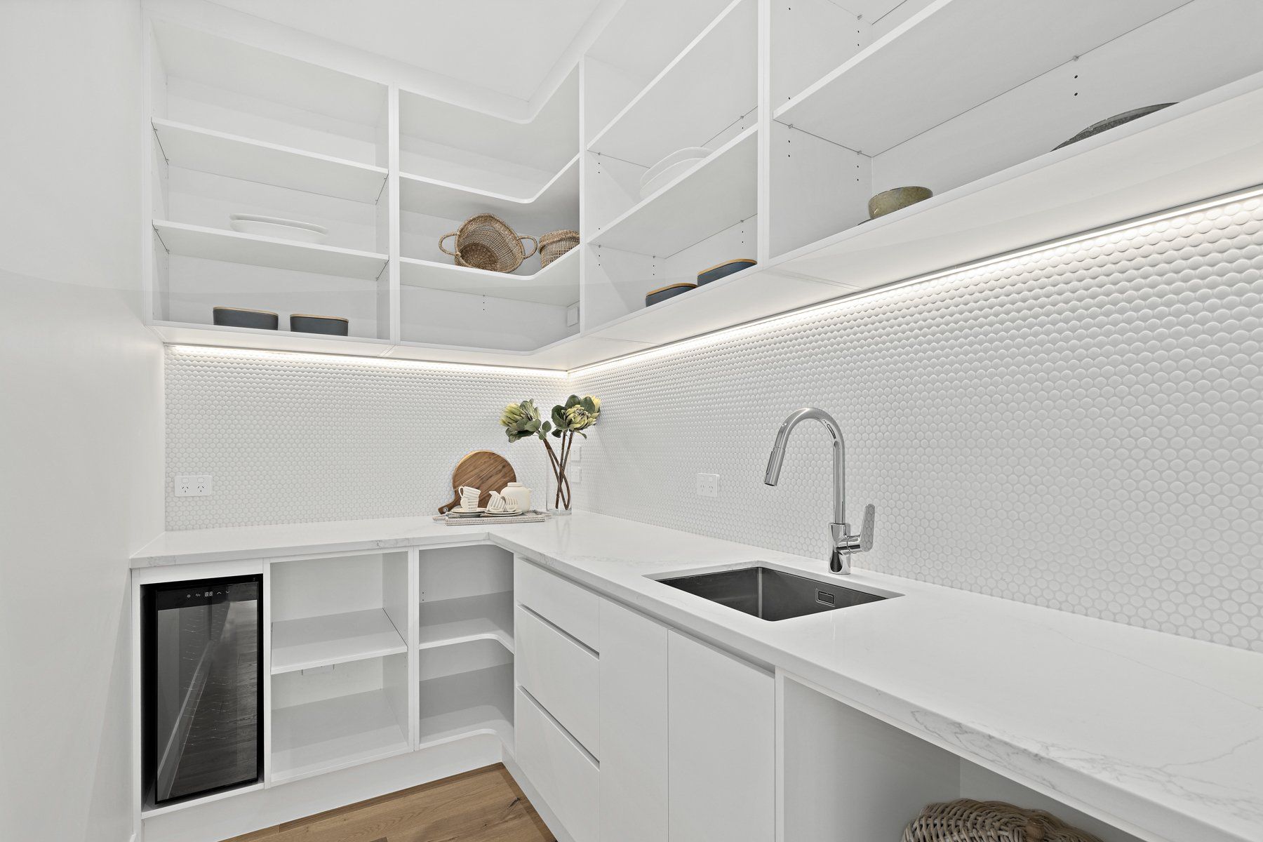 ...Built with an all-important eye on quality, you'll notice the oak flooring, ducted heating/cooling system, butler's pantry with wine fridge, underfloor heating in the master bedroom, EV charging capacity and ample storage."
